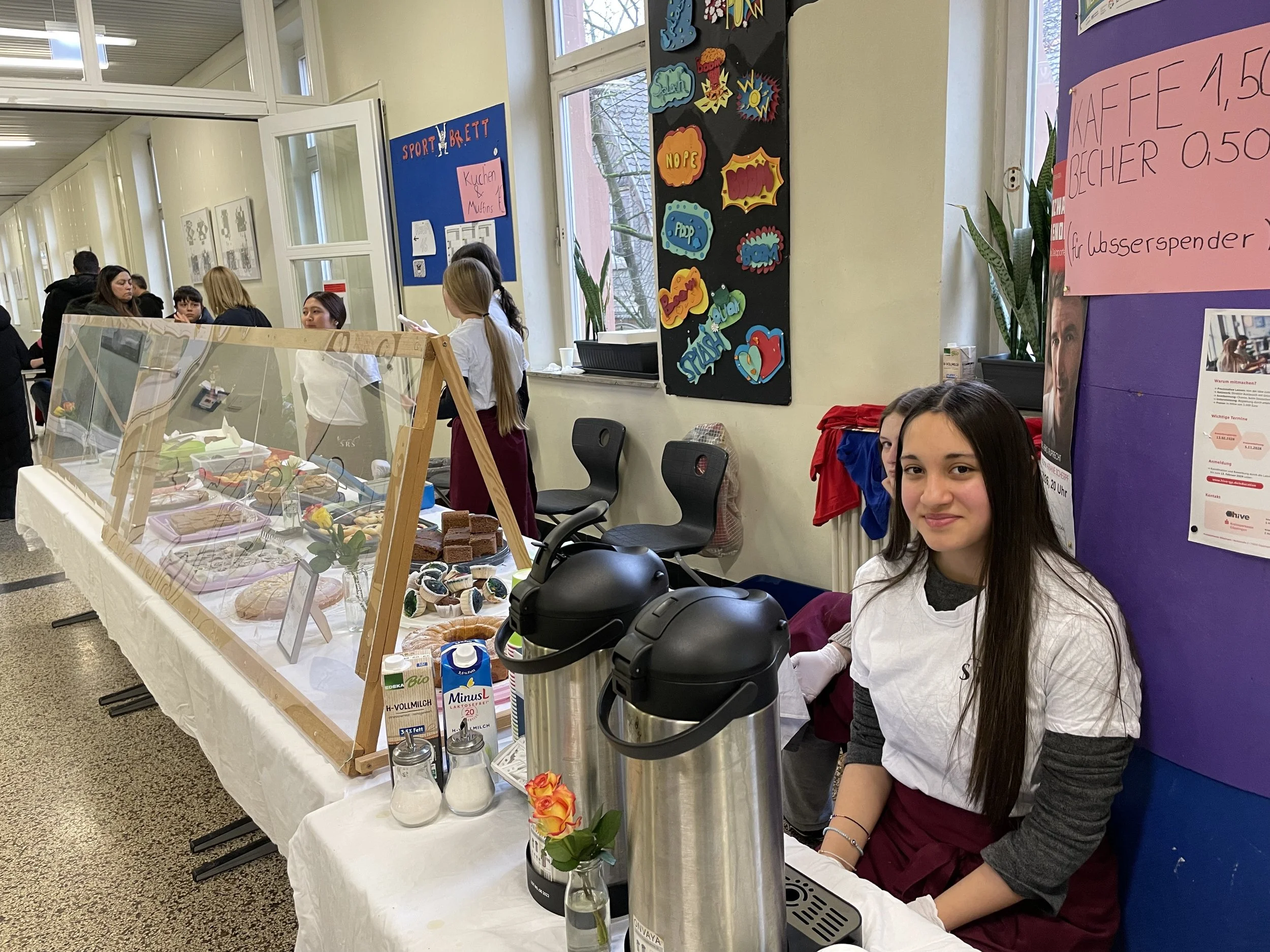 An der Schiller-Realschule herrschte am Nikolaustag festliche Stimmung im ganzen Schulhaus. Die SMV organisierte eine liebevolle Aktion, bei der der Nikolaus gemeinsam mit Knecht Ruprecht alle Klassen besuchte. Mit humorvollen und persönlichen Worten richteten sie sich an die Schülerinnen und Schüler – und als kleine Aufmerksamkeit erhielt jede und jeder eine Nikolaus-Schokolade. In der 6. Stunde öffnete die SMV ihre stimmungsvolle Nikolausstation: Es gab Kuchen, heißen Punsch und rote Nikolausmützen zu kaufen, begleitet von weihnachtlicher Musik. Die Aktion war ein voller Erfolg – Kuchen und Punsch waren restlos ausverkauft, und überall sah man fröhliche und strahlende Gesichter. Ein herzliches Dankeschön an die SMV und an alle Helferinnen und Helfer, die diesen vorweihnachtlichen Tag so besonders gemacht haben!